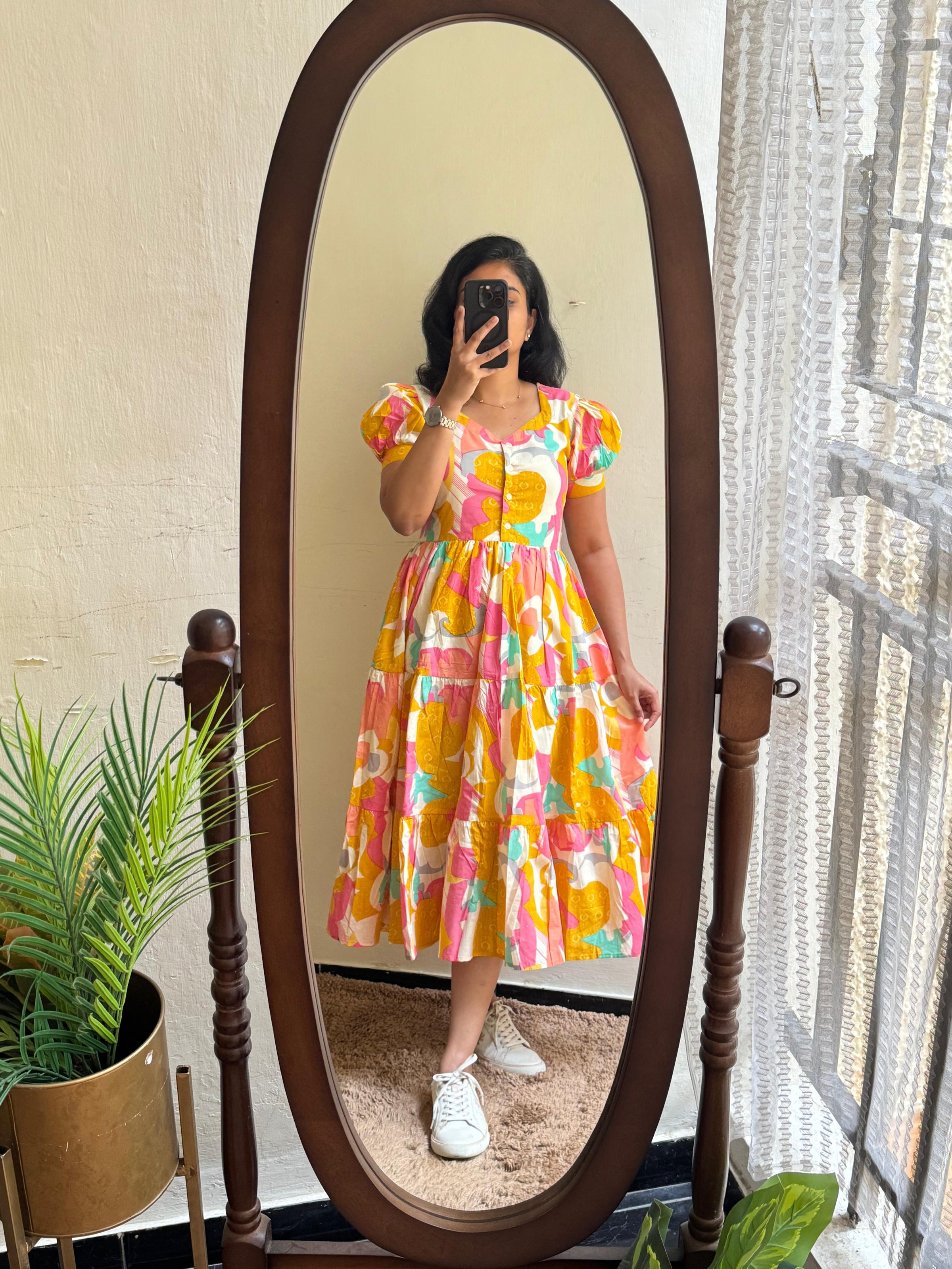 Abstracta with Full Lining - Introducing pure COTTON in colourful pattern !! Comes with PURE COTTON full lining!!! Feeding and non feeding people also can wear!! Maternity friendly!! Back knot provided!! One side Pocket provided!!