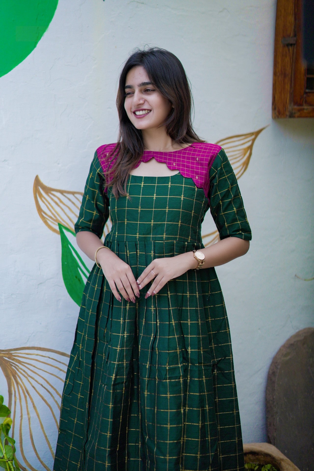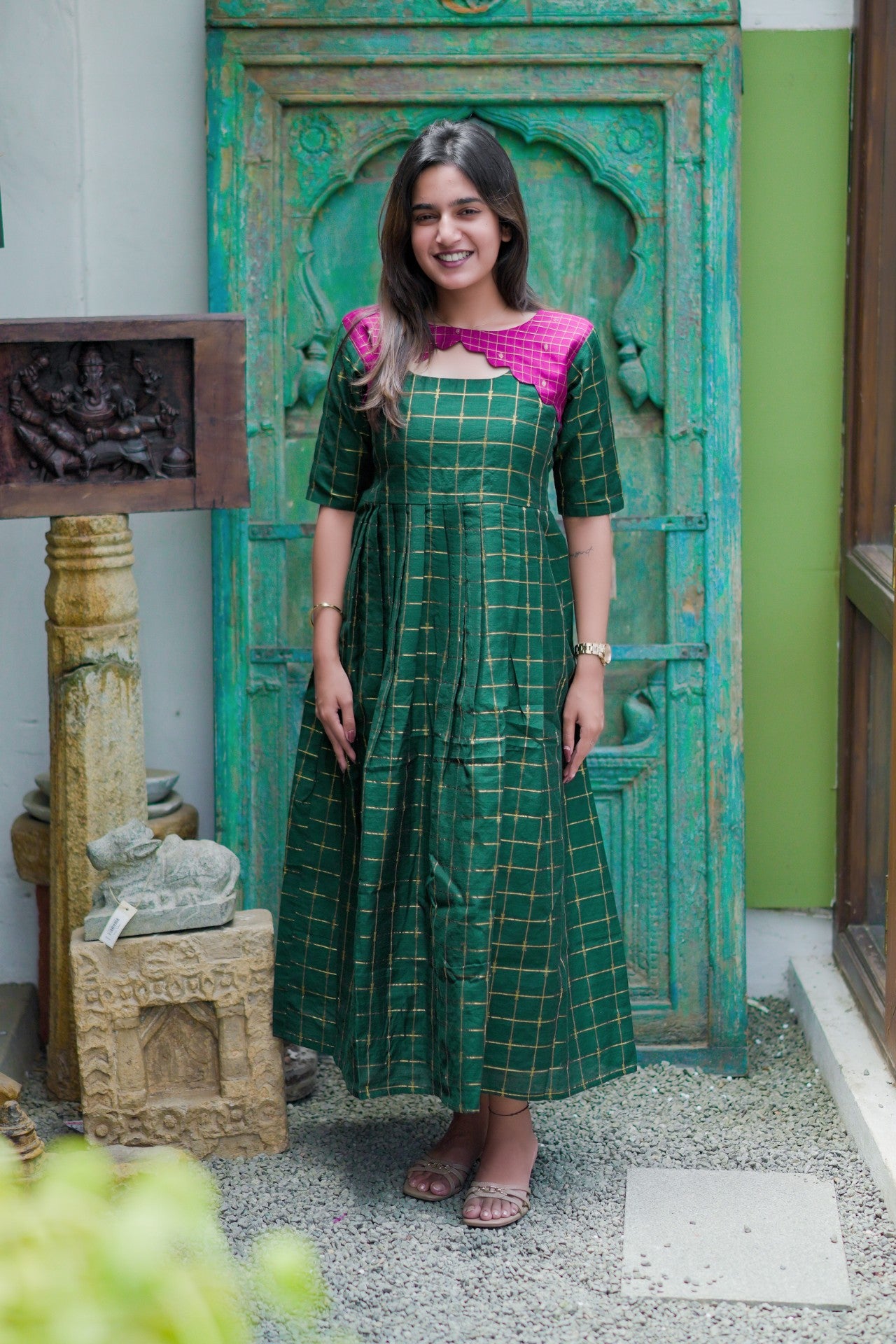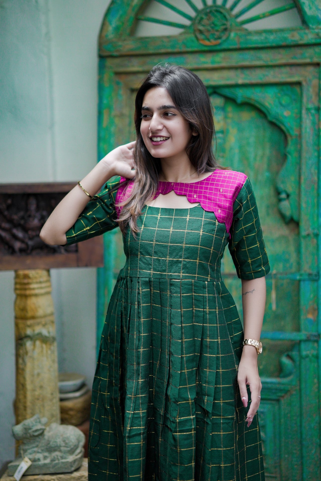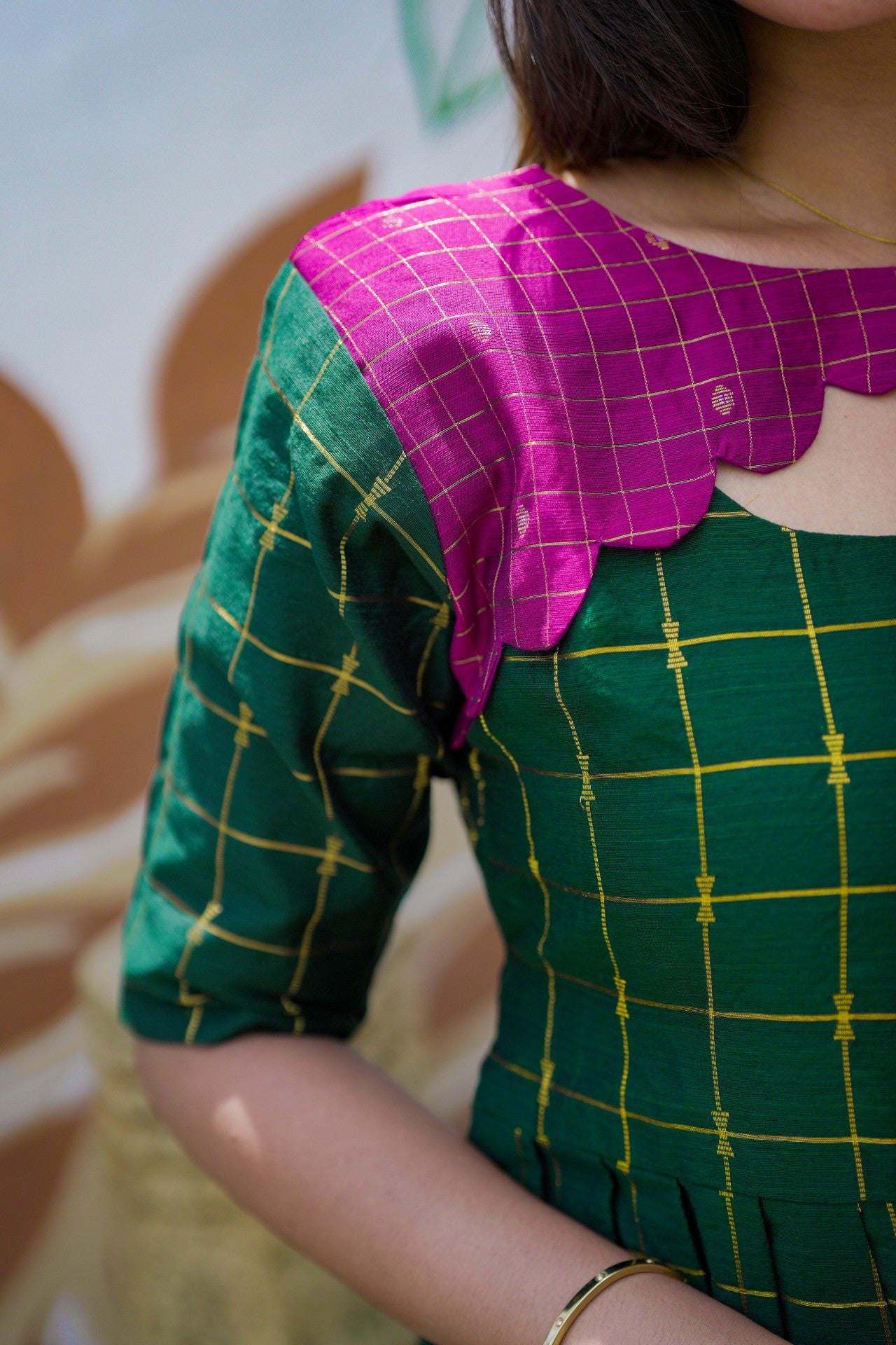 Kaamini rawsilk Dseries- Introducing Beautiful raw silk with golden zari checks type and its having hip knot!! Full lining provided !!! wash with care!!