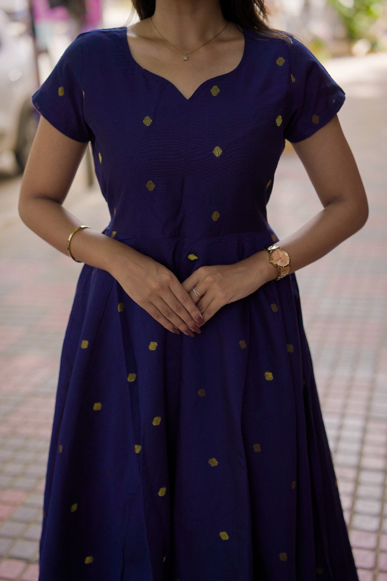 Rawsilk butta Dseries- Introducing Beautiful raw silk with golden zari butta anarkali type with full flare and its having hip knot!! Full lining provided !!! wash with care!!