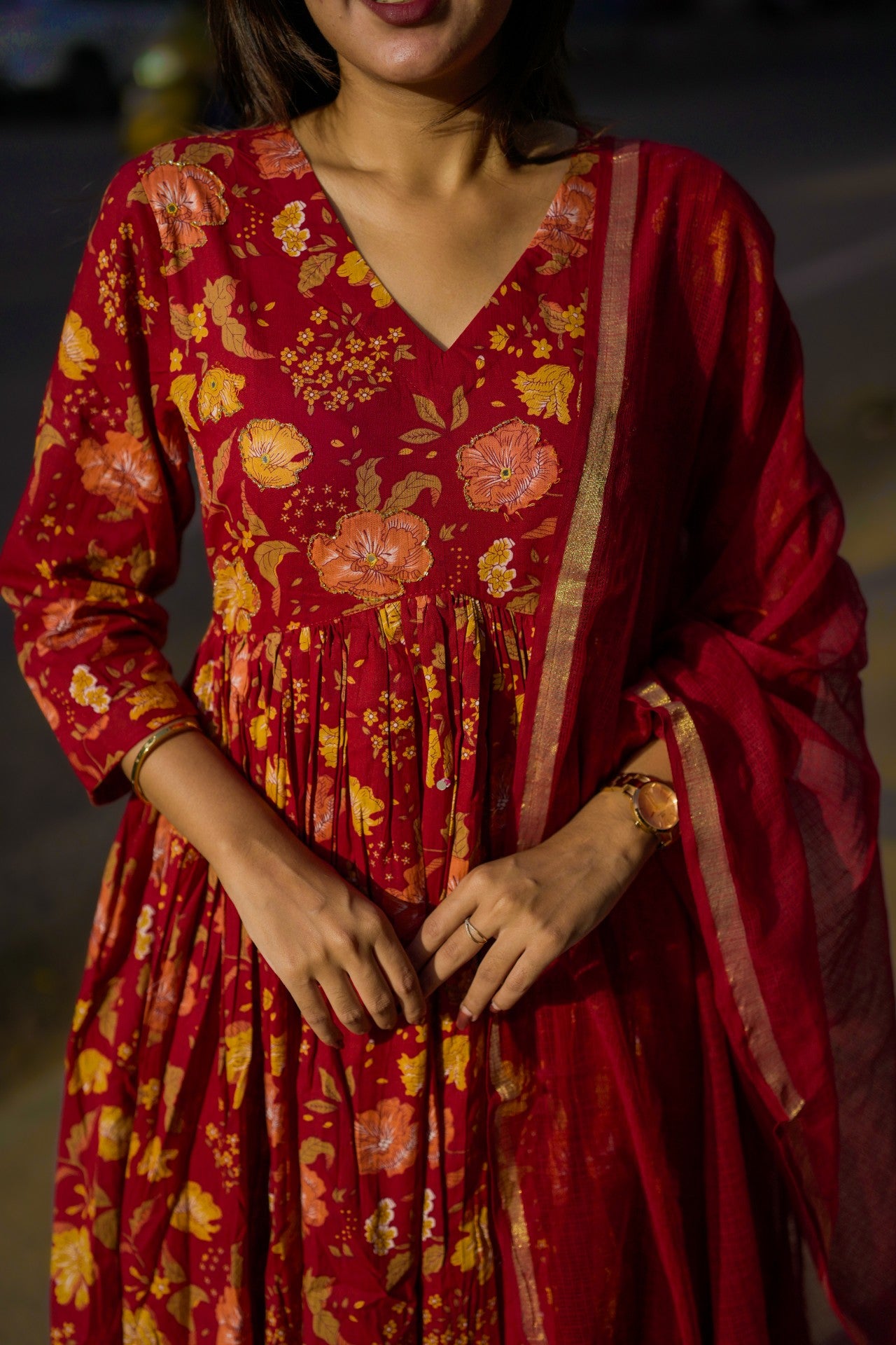 Three piece set 02 - Step into effortless elegance with our latest Anarkali type, pant with duppatta collection – a perfect blend of tradition and modern charm. designed for all-day comfort, and adorned with intricate details,