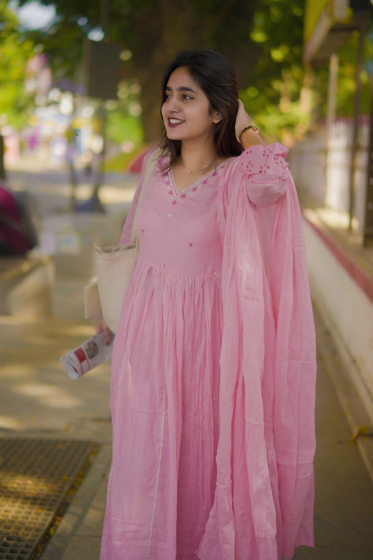 Three piece set 05 - Step into effortless elegance with our latest Anarkali type, pant with duppatta collection – a perfect blend of tradition and modern charm. designed for all-day comfort, and adorned with intricate details,