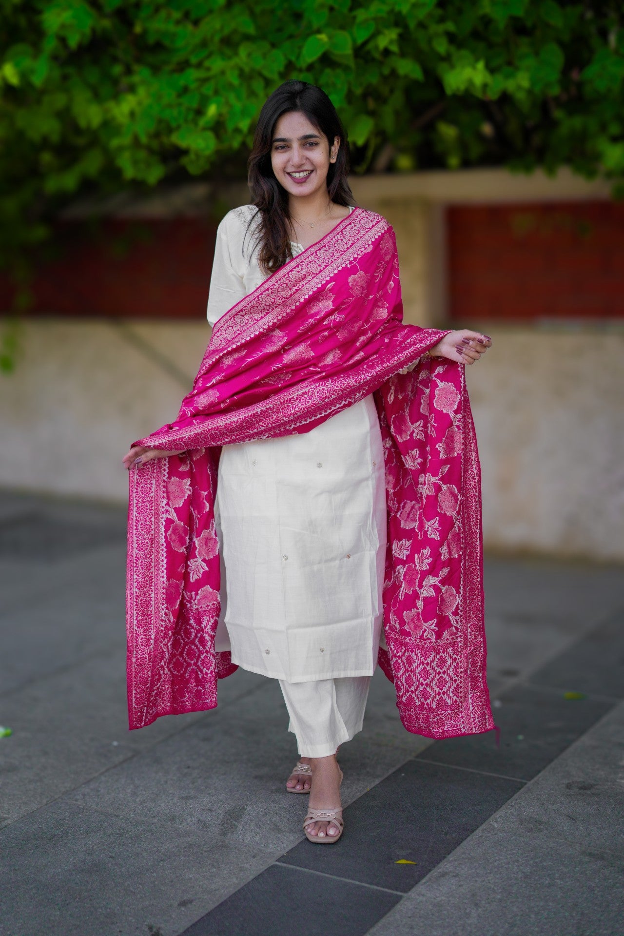 Three piece set 05 - Step into effortless elegance with our latest kurti type, pant with duppatta collection – a perfect blend of tradition and modern charm. designed for all-day comfort, and adorned with intricate details, Bansari type Duppatta is the classic one definitely all should try it!!